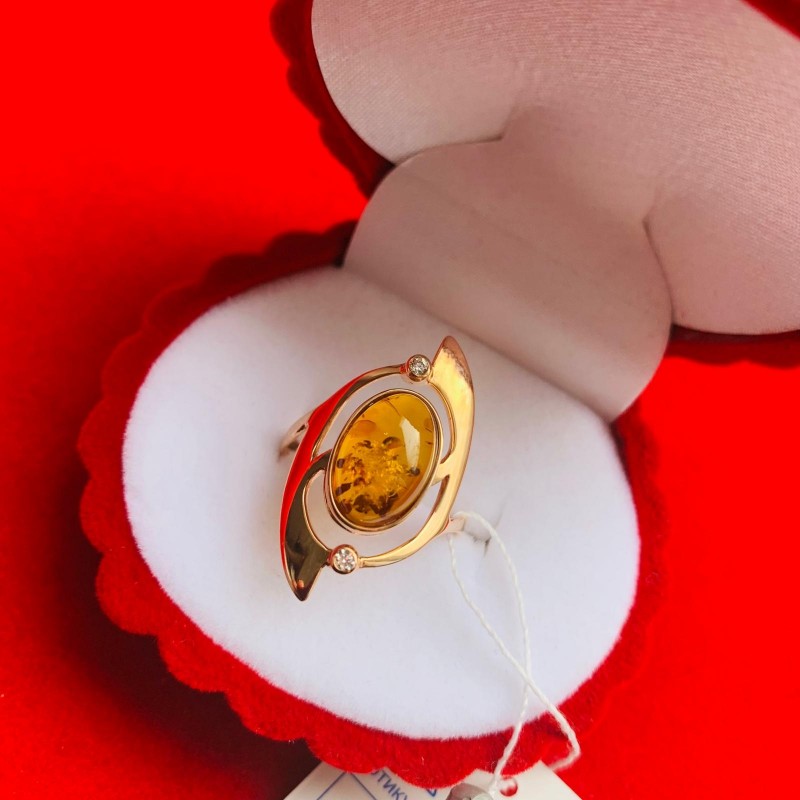 Goldring aus Rotgold 585° mit Bernstein Zirkonia. Ein anmutiger Ring aus 585er Rotgold mit funkelnden Zirkoniaeinsatz und Bernstein, mit diesem erstaunlichen "Stück der Sonne", in allen Schattierungen der Honigfarbe, begeistert und erfreut Sie dank seiner Schönheit. Der Ring betont perfekt die Zärtlichkeit, den Charme und die Natürlichkeit Ihrer Schönheit und lenkt auf die Weiblichkeit Ihrer Hände! Ringe aus Gold setzen den nötigen Akzent im Bild und machen auf den Reichtum und Luxus der Accessoires aufmerksam, denn Gold ist schön, stilvoll, schick und teuer. Passt sowohl einer soliden Dame als auch einer jungen Frau.
