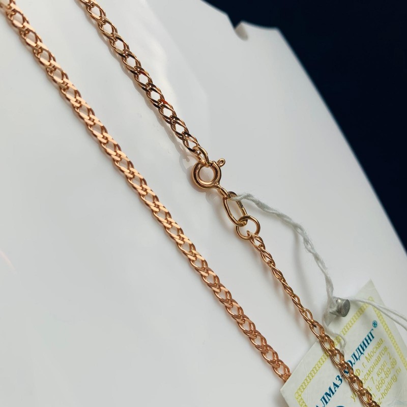 Russisches Gold in Deutschland 585 Halskette Doppelraute. Feminine und zugleich langlebige 585er Goldkette mit funkelndem Diamantschliff. Ketten aus Gold setzen den nötigen Akzent im Bild und machen auf den Reichtum und Luxus der Accessoires aufmerksam, denn Gold ist schön, stilvoll, schick und teuer.