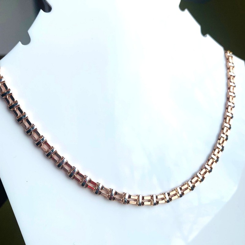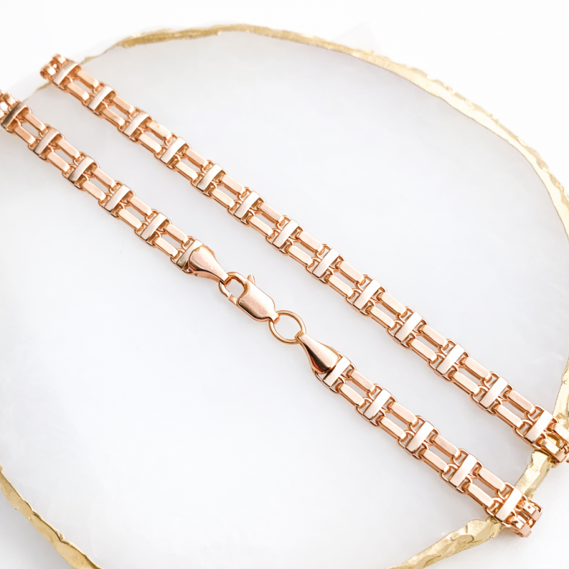 Kette russisches Gold 585. Goldkette aus 585er Rot- und Weißgold. Doppeltes Ankergeflecht mit polierten Gliedern