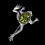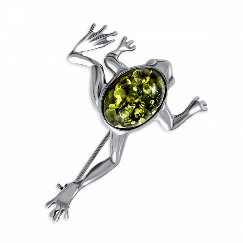 Eine niedliche Brosche, in Froschform, aus 925er Silber verziert mit grünem Bernstein. Rhodiniert!