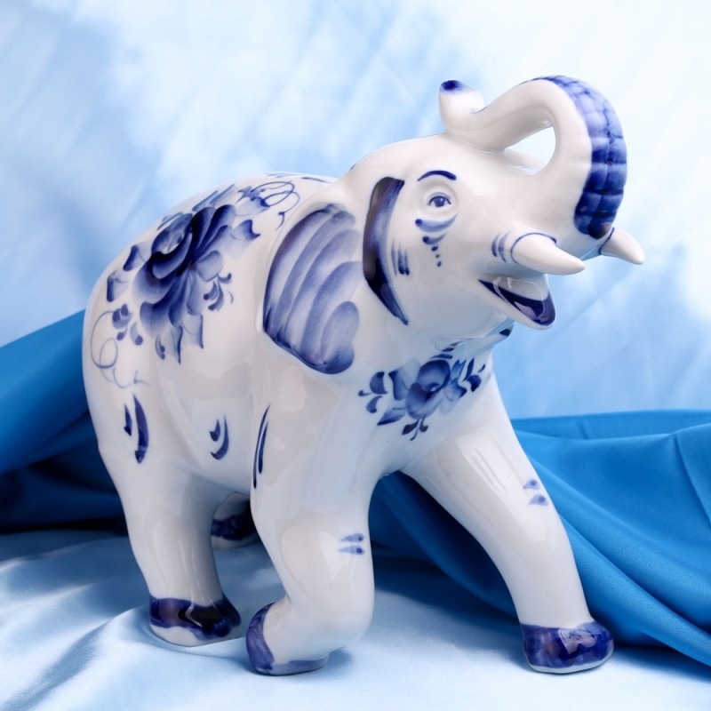 Porzellanfigur eines Elefanten. Gzhel, handbemalt mit Kobalt.