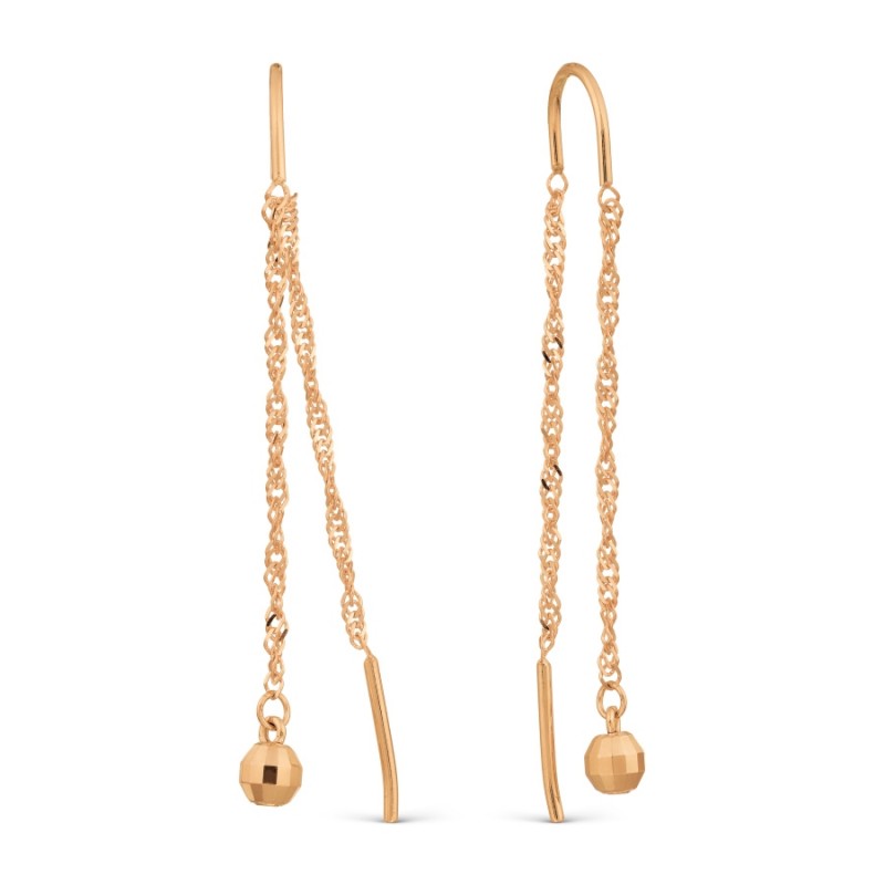 Singapurketten mit diamantgeschliffenen Kugeleinsätzen schwingen frei auf dem U-förmigen Verschluss. Auf der Rückseite des Schlosses sind auch frei schwingende Ketten befestigt. Ohrringe sind immer in Bewegung, sehen originell und wunderschön aus und ziehen alle Blicke auf ihre Herrin!