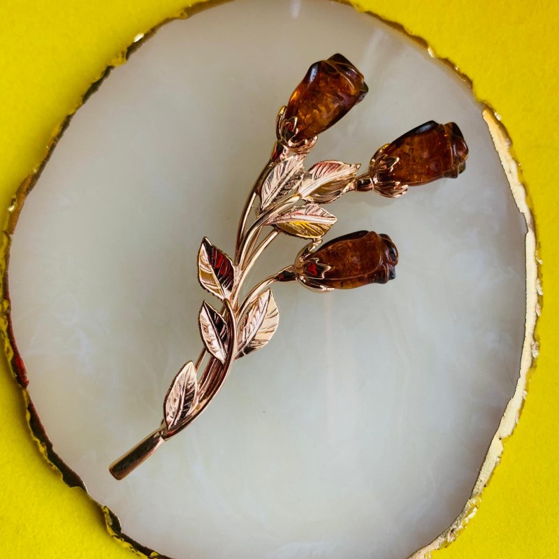 Vergoldete Silberbrosche "Rosen". Bernstein