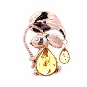 Eine charmante Brosche aus vergoldetem 925er Silber verziert mit Bernstein, mit diesem erstaunlichen "Stück der Sonne", in allen Schattierungen der Honigfarbe, begeistert und erfreut Sie dank seiner Schönheit!