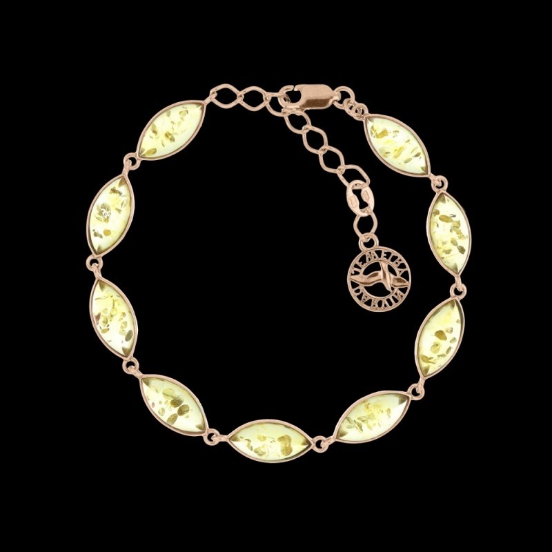 Ein festliches feminines Armband aus vergoldetem 925er Silber verziert mit Bernstein, mit diesem erstaunlichen "Stück der Sonne", in allen Schattierungen von Honigfarbe spielt, verzaubert und mit seiner Schönheit besticht, wird Sie immer wieder begeistern! Eine einzigartige Gelegenheit, Ihre Individualität zu betonen, das Bild von Weiblichkeit und Zärtlichkeit zu vermitteln. Eine schöne Kombination aus glitzerndem Gold und sonnigem Bernstein verleiht Ihrem Look eine festliche Stimmung!