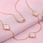 Zartes und romantisches Goldcollier aus 585er Rotgold mit Perlmutt. Ankerweberei