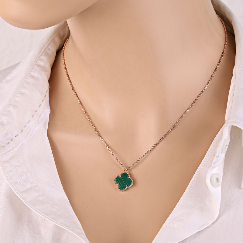 Zartes und romantisches Goldcollier aus 585er Rotgold mit Malachit. Ankerweberei