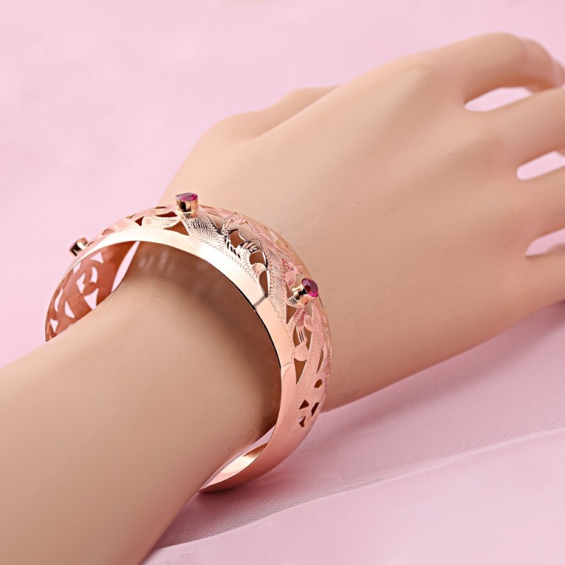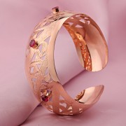 Russisches Gold 585 Rotgold Armband Korund Rubin in Deutschland. Feminines Armband aus 585er Rotgold mit Korund Rubinen. Offener Armreifen. Dieses goldene Armband mit Korund wird die Hände anmutiger Frauen perfekt schmücken! Ein wunderbares Rotgold-Geschenk für einen geliebten Menschen!