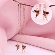 Am U-förmigen Schloss schwingen frei geankerte Ketten mit einem Anhänger in Form eines Kolibri mit Einsätzen aus Saphiren und Zirkonias. Auf der Rückseite des Schlosses sind zusätzlich freischwingende Ketten befestigt. Ohrringe sind immer in Bewegung, sehen originell und schön aus und ziehen alle Blicke auf ihre Herrin!