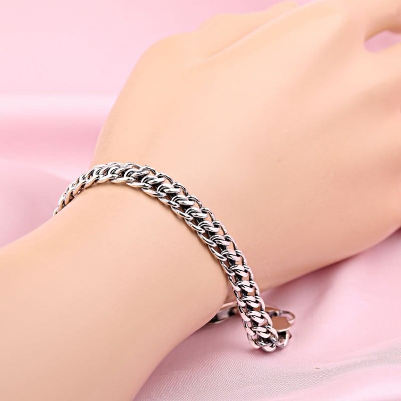 Armband aus 925er Sterlingsilber in Deutschland. Klassisches Armband aus 925er-Sterlingsilber mit diamantgeschliffenem Doppelstrangpanzer. Das Weben von Panzerketten ist heute eine der beliebtesten Arten von Halsschmuck. Diese Art des Strickens ist vielfältig, schön und praktisch. Das vielseitige Schleifen der Glieder verleiht ihnen Glanz und Attraktivität. Das Panzerweben ist langlebig und zuverlässig.