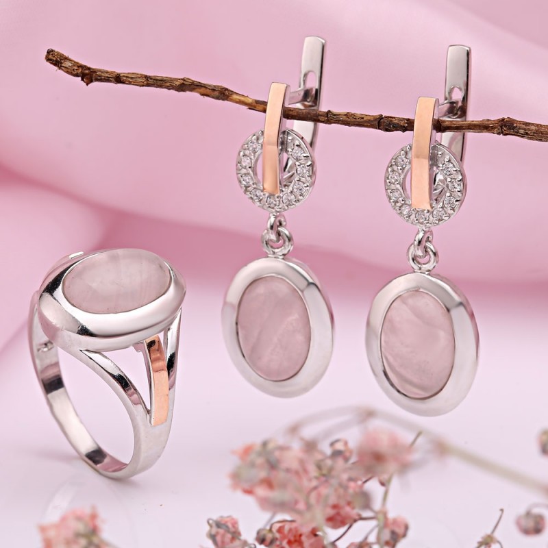 Einsätze: Zirkonia Ø 2,0 mm; 2 Rosaquarz 12,0 x 8,0 mm