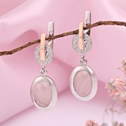 Silberohrhänger mit Gold, Zirkonia & Rosaquarz. Bezaubernde Ohrhänger aus 925er Sterlingsilber mit 375er-Gold, verziert mit funkelnden Zirkonia und Rosaquarz. Wenn Sie Weiblichkeit, Anmut, Lächeln und Schönheit betonen möchten, ist dieses Produkt genau das Richtige für Sie.