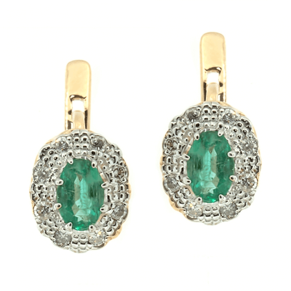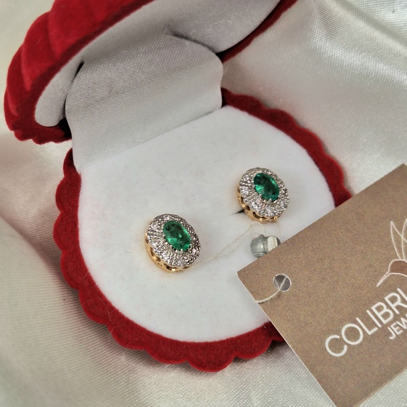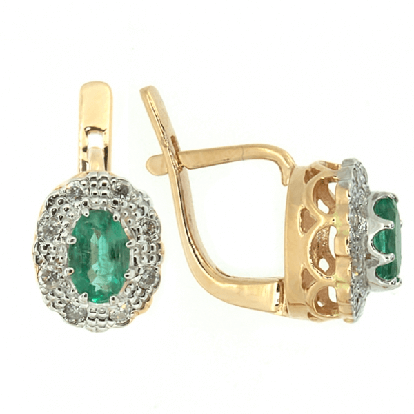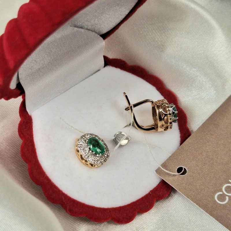 Goldohrringe 585 Smaragden und Diamanten. Elegante Goldohrringe aus