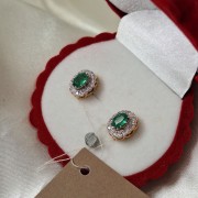 Die ideale Abrundung des Bildes einer stilvollen Frau, die es liebt, ihr Aussehen zu verändern, sind Ohrringe mit Diamanten und Smaragden aus 585er