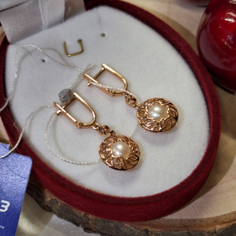 Rotgold 585 Perle Zirkonia. Bezaubernde Goldohrhänger aus 585er rotem russischem Gold, verziert mit natürlichen weißen Zuchtperlen und funkelnden Zirkonia! Diese Ohrringe strahlen Chic und Unwiderstehlichkeit aus! Schmuck aus Perlen unterstreicht den hohen sozialen Status seiner Besitzer und hebt sich von anderen Schmuckstücken ab.