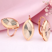 Russisches Gold in Deutschland Goldset. Elegantes Set Zolotoy Berlin aus Rot- und Weißgold 585° verziert mit Diamantschliffen. Das Lichtspiel und das interessante Muster, das durch die Diamantbearbeitung entsteht, erwecken den Eindruck, dass es sich um ein Produkt mit Einsätzen aus echten Diamanten handelt. Das Set besteht aus einem Ring und Ohrringen.