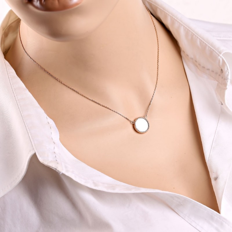 Rotgold, verziert mit schillerndem Perlmutt. Kette - Ankergeflecht mit Diamantschliff. Wenn Sie bei Ihrer Begleiterin ihre Weiblichkeit, Anmut, ihr Lächeln und ihre Schönheit betonen möchten, dann ist ein solches Geschenk genau das Richtige für Sie.