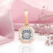 Rotgold, besetzt mit einem funkelnden tanzenden Diamanten. Dieser wundervolle Anhänger wird jedes Outfit auffrischen, die Schönheit des Halses hervorheben und dem Bild einen Hauch von Romantik und Geheimnis verleihen.
