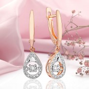 Dancing Diamond Goldohrhänger 585 Russisches Gold. Dancing Diamond – bezaubernde, sinnliche Ohrringe aus 14 Karat russischem Rotgold mit funkelnden Diamanten vor einem diamantgeschliffenen Weißgoldhintergrund!
