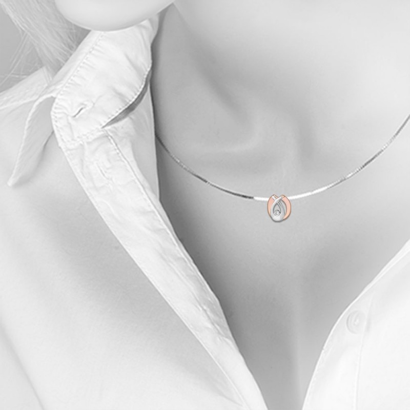 Goldanhänger mit Diamanten. Ein bezaubernder, eleganter Läufer-Anhänger aus 14-karätigem Rot- und Weißgold, verziert mit funkelnden Diamanten. Die Fassung in Weißgold betont besonders die Würde und Schönheit des Diamanten. Dieser wundervolle Anhänger wird jedes Outfit auffrischen, die Schönheit des Halses hervorheben und dem Bild einen Hauch von Romantik und Geheimnis verleihen.