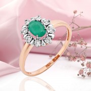 Rotgold mit Weißgoldakzenten, die die Schönheit der Steine perfekt zur Geltung bringen. Ein sehr zarter und stilvoller Goldring mit einem leuchtenden Smaragd und funkelnden Diamanten. Smaragd symbolisiert Weisheit und Diamanten symbolisieren Wohlstand, daher ist ein Geschenk in Form eines Goldrings mit solchen Steinen ein würdiges Geschenk!