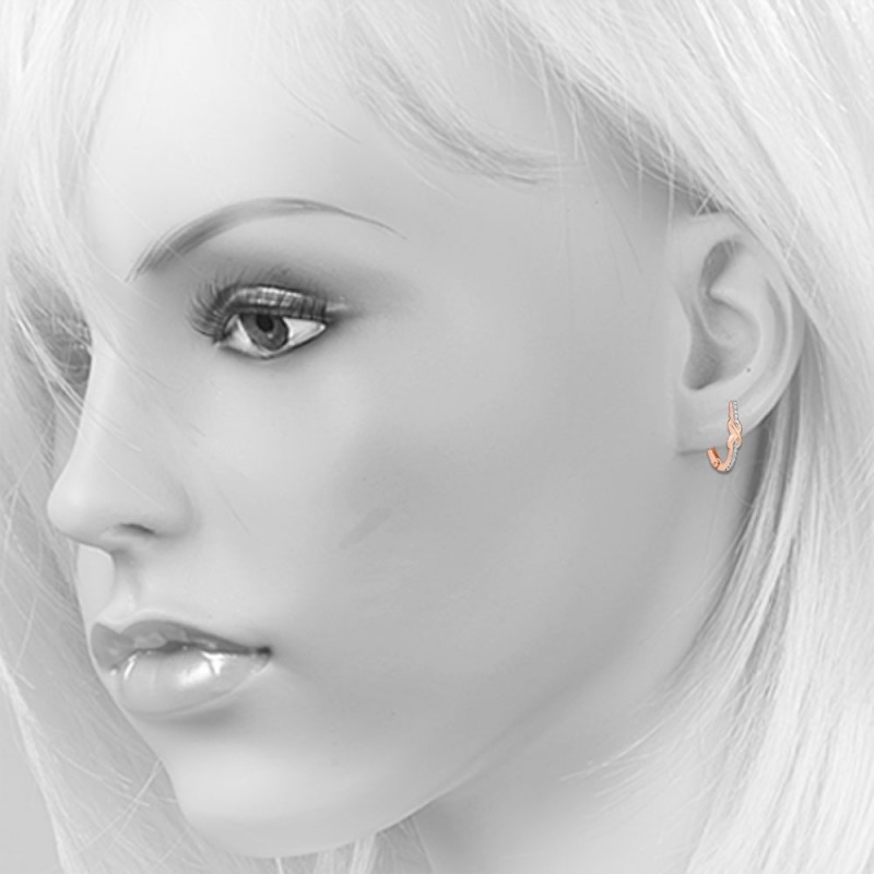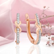 Goldohrringe mit Diamanten Russisches Gold 585. Elegante Goldohrringe aus 585er Rotgold mit Diamanten auf Weißgoldhintergrund. Die ideale Abrundung des Bildes einer stilvollen Frau, die gerne ihr Aussehen verändert, sind Ohrringe mit Diamanten aus 585er Rotgold. Dieser ausdrucksstarke und raffinierte Accessoir eignet sich für Frauen jeden Alters, die interessante Designs und makellose Steine ​​schätzen.