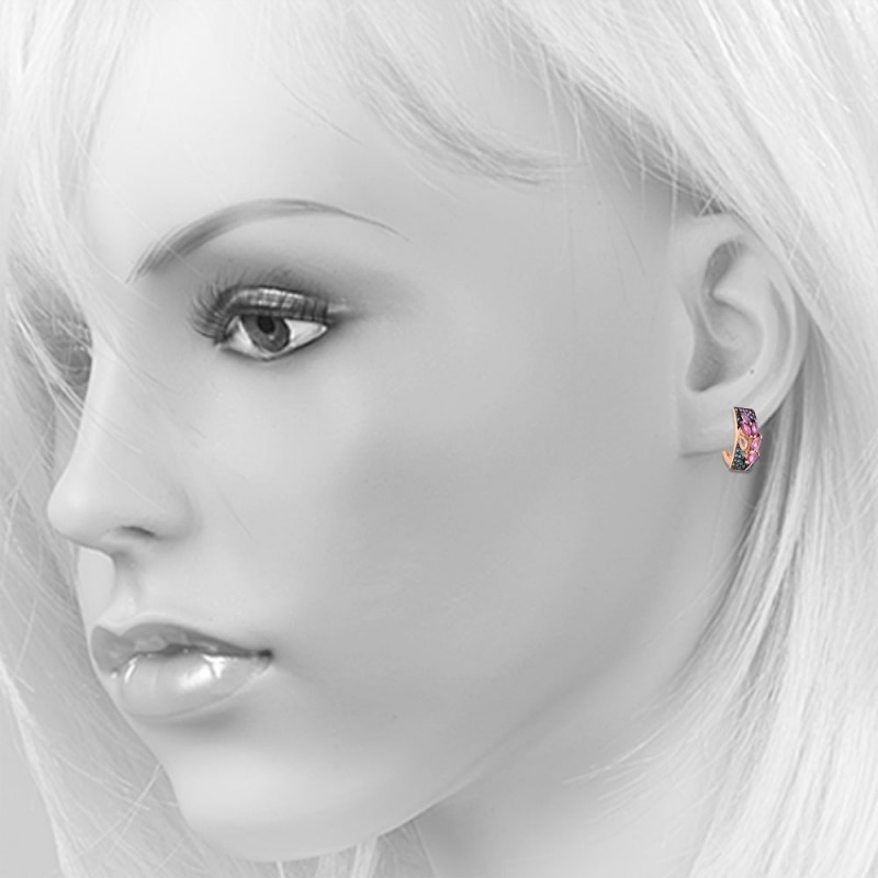 Rotgold 585 Amethyst Rhodolith Zirkonia. Zarte Goldohrringe aus rotem russischem Gold 585, verziert mit Amethyst, Rhodolith und Zirkonia! Der geschwärzte Rahmen der Steine unterstreicht die Tiefe ihrer Farbe! Diese Ohrringe strahlen Chic und Unwiderstehlichkeit aus – Sie werden damit sowohl im Alltag als auch in festlicher Kleidung attraktiv sein!
