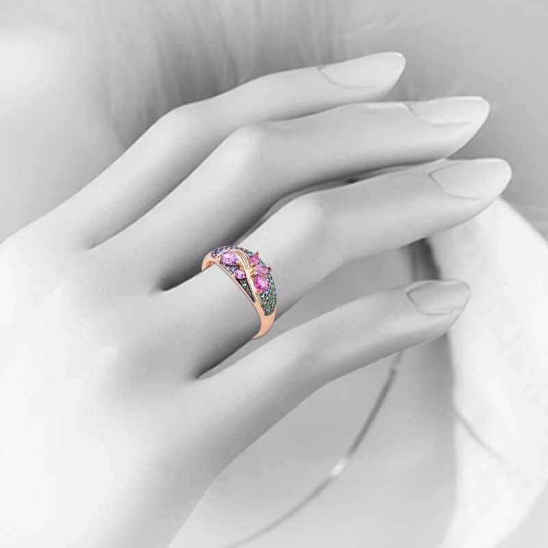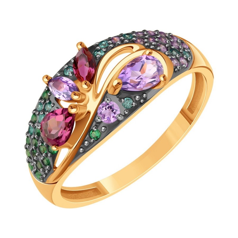 Rotgoldring 585 Amethyst Rhodolith Zirkonia. Goldring aus 585er russischem