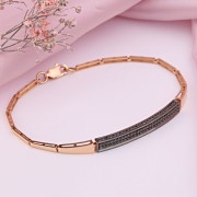 Goldarmband Rotgold 585 Diamanten. Feminines Armband aus 585er Rotgold mit schwarzen Diamanten auf geschwärztem Hintergrund. Dieses Design betont die Farbtiefe der Steine. Ausgefallenes Weben mit Spiegeloberfläche. Dieses goldene Armband mit Diamanten wird die Hände anmutiger Frauen perfekt schmücken! Ein wunderbares Rotgold-Geschenk für einen geliebten Menschen!
