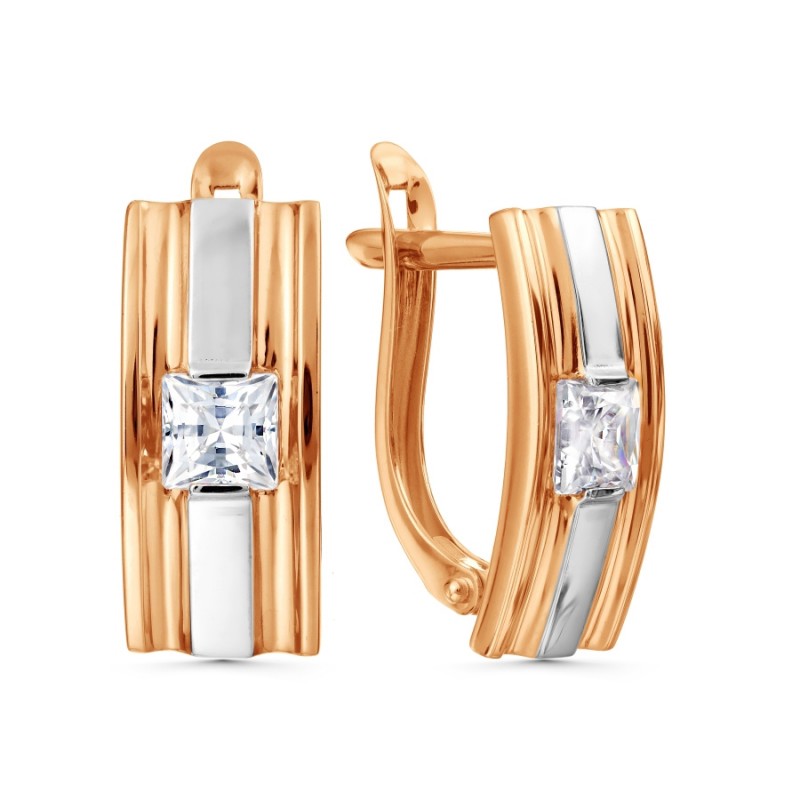 Goldohrringe aus 585er Russisches Gold Zirkonia. Feminine, elegante Ohrringe aus 585er
