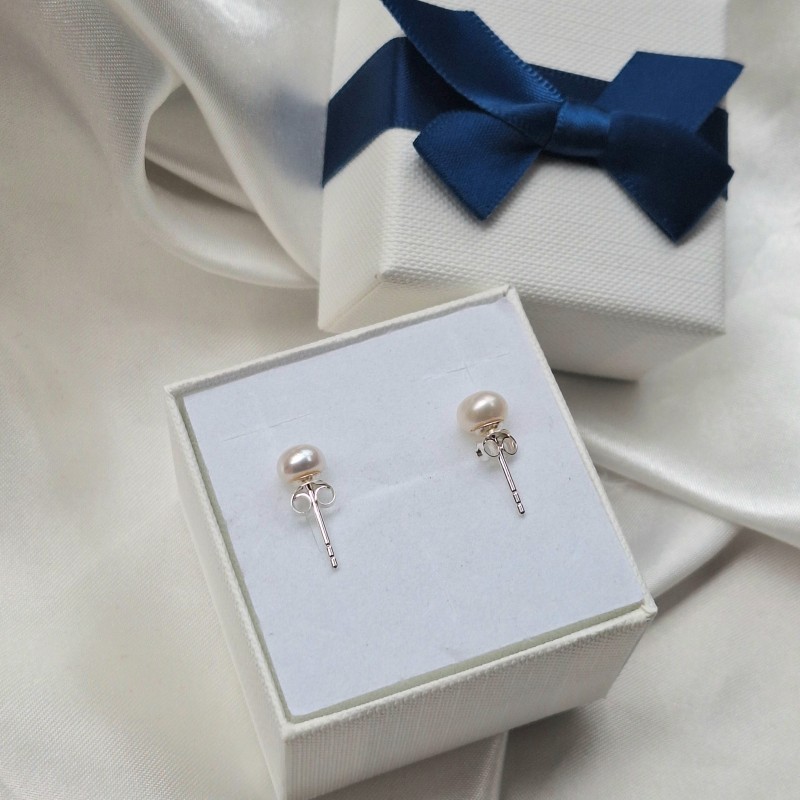 Ohrstecker aus 925er Silber Perlen. Ohrstecker mit natürlichen, künstlich gezüchteten Perlen, die unter normalen Bedingungen wachsen! Niedliche Ohrstecker sind wunderbares Geschenk oder eine Gelegenheit, sich selbst eine Freude zu machen.