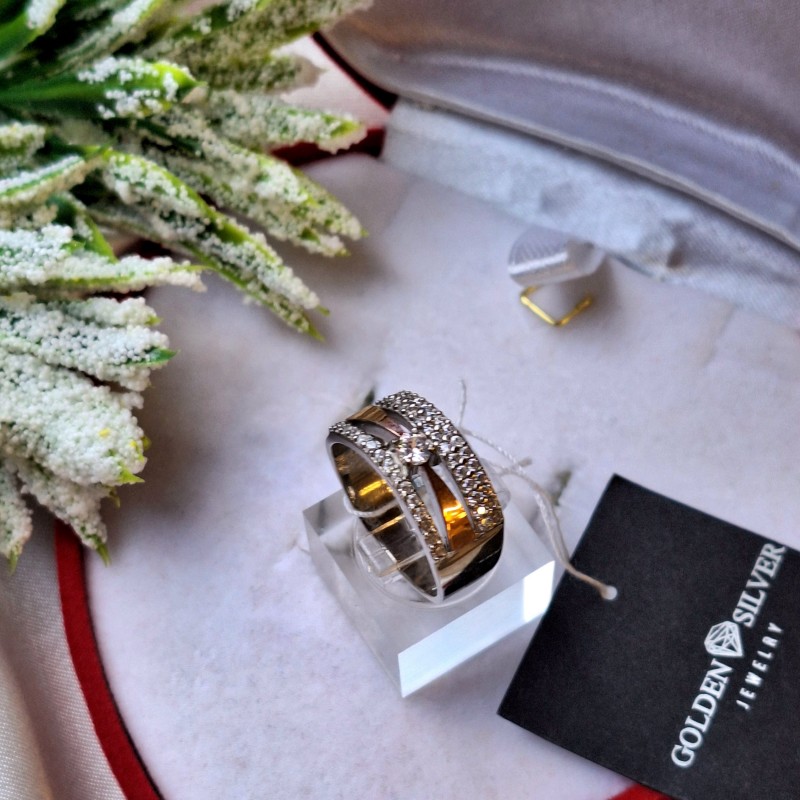 Silber mit Goldeinsatz sieht im Vergleich zu klassischem Silber sehr reichhaltig und stilvoll aus. Seine Brillanz und Schönheit werden das Bild großartig bereichern. Eine Dame mit einer solchen Dekoration wird stilvoll und raffiniert aussehen.