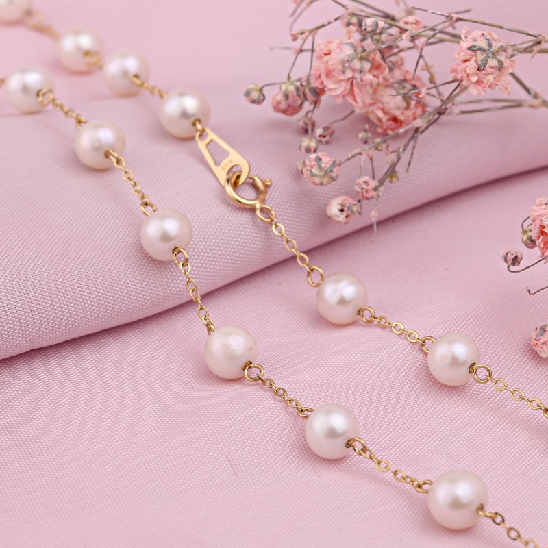 Goldcollier Gelbgold Russisches Gold 585 Perlen