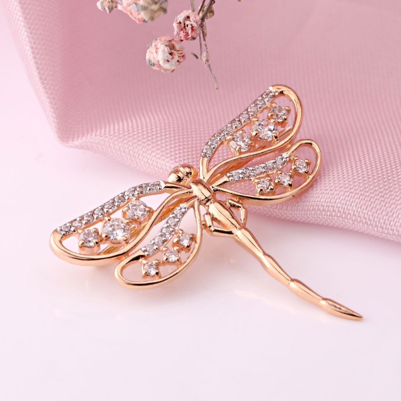 Brosche aus 585er Russisches Gold mit Zirkonia. Rotgold mit Zirkonia auf Weißgoldhintergrund. Goldbroschen schaffen den nötigen Akzent im Bild und lenken die Aufmerksamkeit auf den Reichtum und Luxus von Accessoires, denn Gold ist schön, stilvoll, schick und teuer.