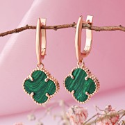 Rotgold 585 Probe mit Malachit. Diese schönen Ohrringe werden Sie schmücken und große Freude bereiten! Wenn Sie bei Ihrer Begleiterin ihre Weiblichkeit, Anmut, ihr Lächeln und ihre Schönheit betonen möchten, dann ist ein solches Geschenk genau das Richtige für Sie.