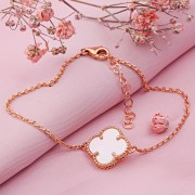 Rotgold 585 Goldarmband mit Perlmutt ⌀10 mm. Zartes und romantisches Goldarmband aus 585er