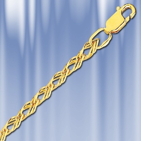 Vergoldete Silberkette 925 Dreifachraute. Klassische Silberkette 925º Weben "Dreifachraute", mit einer massiven gelben Vergoldung 999º. Die polierten Glieder der Ketten im Licht der Lampen leuchten heller als jeder andere Schmuck. Vergoldete Silberketten vermitteln den Eindruck eines Produkts aus Gold, kosten jedoch wie Silber. Eine hervorragende Gelegenheit, schön, stilvoll, schick, teuer auszusehen.