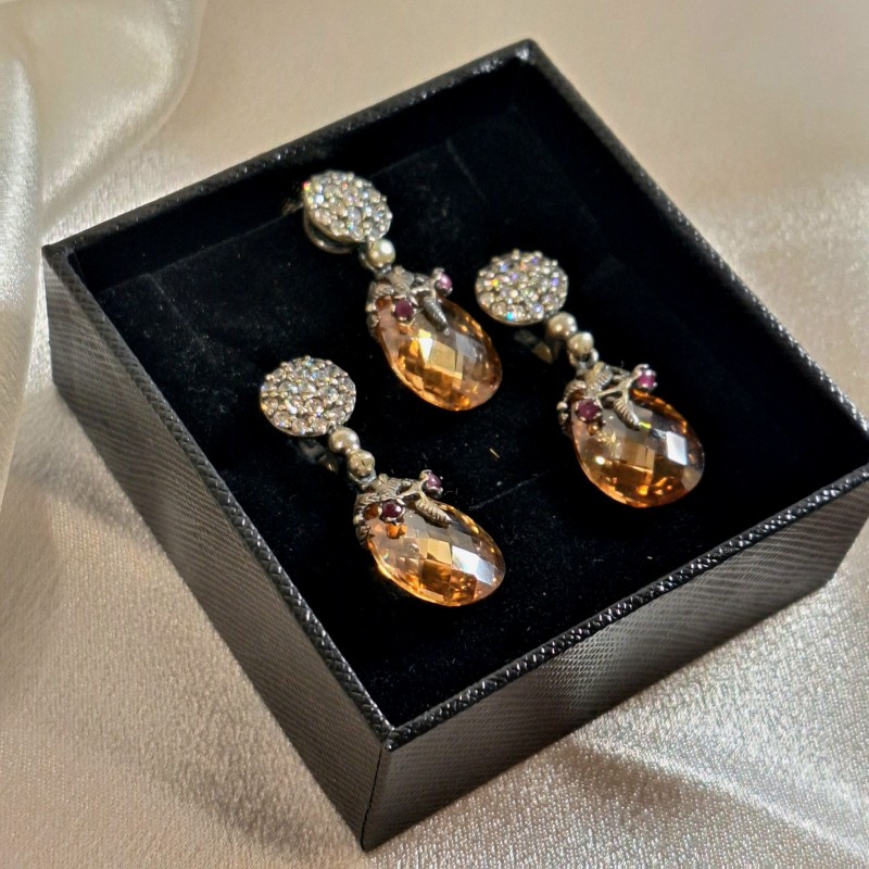 Einsatz: 2 Zitrin Tropfen 17.0 х 13.0 mm; Zirkonia Ø 2.0 mm; 2 Rubin Ø 2,0 mm
