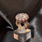 Einsatz: 1 runde Zirkonia Ø 10.0 mm; Rubine Ø 2,5 mm; Zirkonia Ø 1,5 mm