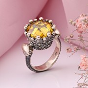 Ring aus 925er Silber Zirkonia Сitrin. Ein schicker ethnischer Ring im osmanischen Stil von handgefertigt aus geschwärztem 925er Silber mit einem großen Einsatz aus funkelnden Citrin und Zirkonia. Frauen haben lange versucht, ihre Schönheit, Zerbrechlichkeit und ihren Charme mit Schmuck zu betonen. Orientalischer Damenschmuck hat viele Gesichter. Sie können sowohl Anmut und Bescheidenheit als auch Extravaganz des Bildes betonen. Schmuck im orientalischen Stil wurde traditionell von Juwelieren in Form von ganzen Sets hergestellt, darunter Armbänder, Ohrringe, Ringe und Halsketten. So erlangten schöne orientalische Frauen eine beeindruckende Helligkeit.