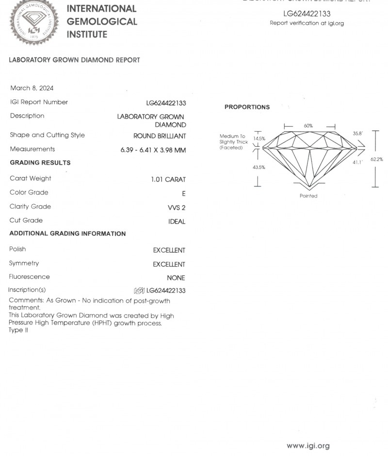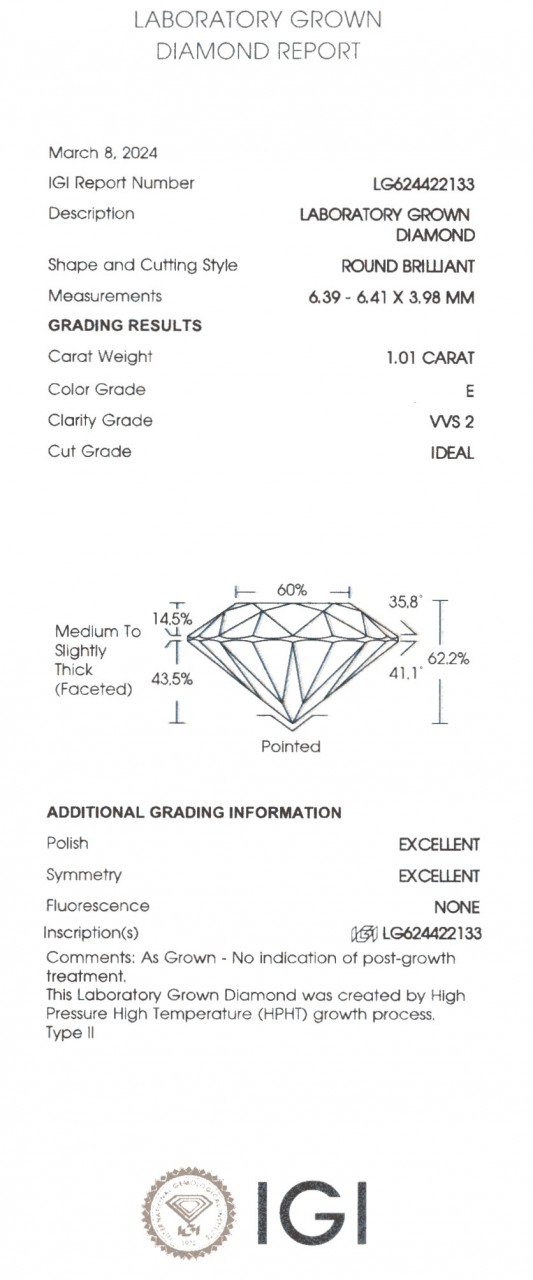 Lab Grown Diamonds Ø 6.0 mm Laboratory Report LG624422133