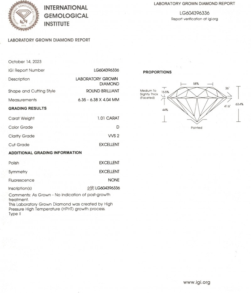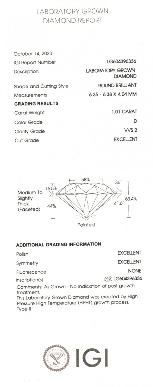 Lab Grown Diamonds Ø 6,0 мм Labaratory Report LG604396336