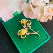 Vergoldete Silberbrosche 925 Königlicher Bernstein Zirkonia
