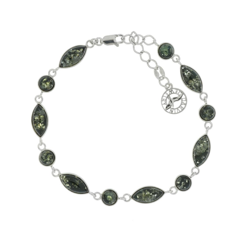 Silberarmband 925 mit Bernstein. Ein schickes feminines Armband aus 925er Sterlingsilber, mit grünem Bernstein wird Sie immer begeistern! Eine einzigartige Gelegenheit, Ihre Individualität zu betonen, das Bild von Weiblichkeit, Sonnenschein und Zärtlichkeit zu vermitteln.