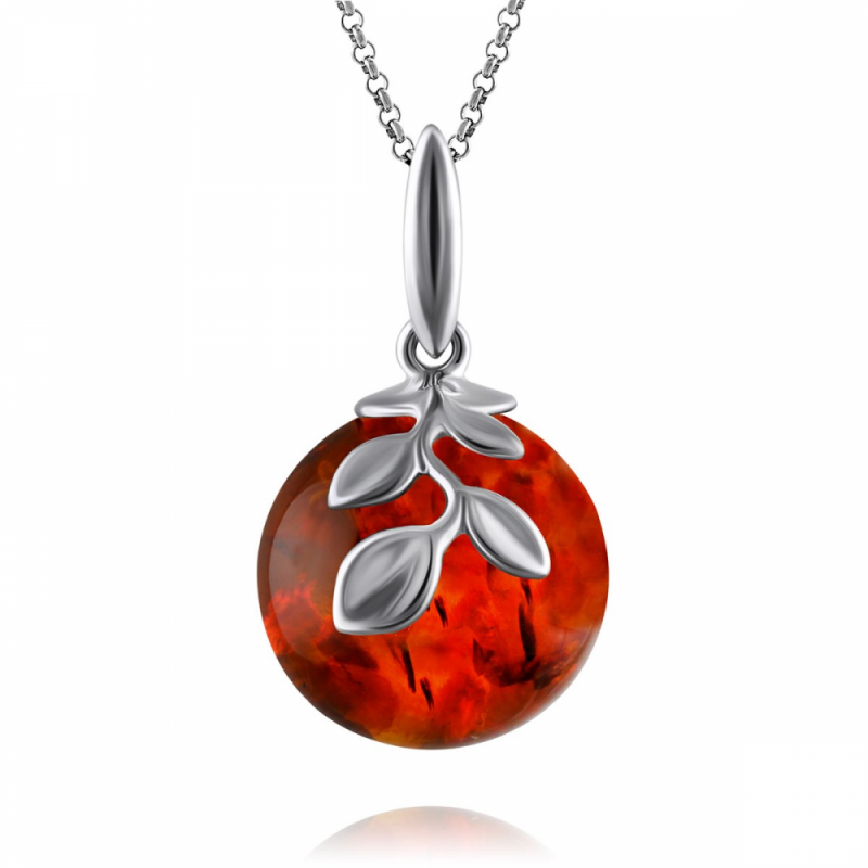 Silberanhänger mit Bernstein. Ein charmanter Anhänger aus rhodiniertem 925er Silber und cognacfarbigem Bernstein. Eine einzigartige Gelegenheit, Ihre Individualität zu betonen, das Bild von Weiblichkeit, Sonnenschein und Zärtlichkeit zu vermitteln.