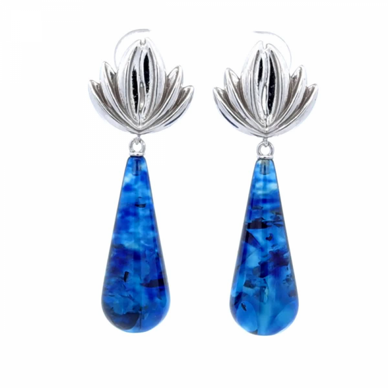 Silberohrhänger 925º mit Bernstein in Deutschland kaufen. Wunderschöne Ohrhänger aus rhodiniertem Silber 925 Probe, mit Bernstein in einer ungewöhnlichen Farbe, die im Prozess der speziellen Technologie hergestellt wird, wobei so außergewöhnliche Farbe erhalten wird. Eine einzigartige Gelegenheit, Ihre Individualität zu betonen, das Bild von Weiblichkeit, Sonnenschein und Zärtlichkeit zu vermitteln.