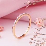 Russisches Gold 585 Goldring kaufen Diamanten. Zarter Ring aus 14-karätigem Rotgold mit Akzenten aus Weißgold und bezaubernd funkelnden Diamanteneinsätzen. Weißgold betont die Schönheit von Diamanten. Ein tolles Geschenk von rotem Gold mit Diamanten für einen geliebten Menschen und die Möglichkeit, Ihre Originalität hervorzuheben!