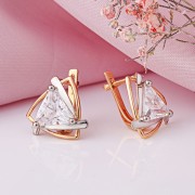 Rotgold 585 mit Weißgoldakzenten und funkelnden Zirkonia. Die ideale Abrundung des Bildes einer stilvollen Frau, die gerne ihr Aussehen verändert, sind Ohrringe mit Zirkonia aus 585er