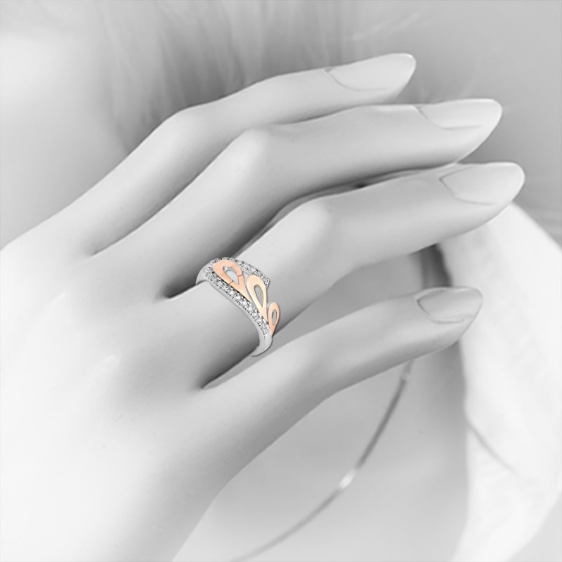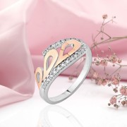 Silberring mit Gold in Deutschland kaufen Zirkonia. Eleganter Ring aus 925er Silber, verziert mit Gold und funkelnden Zirkonia! Der Ring wird die Zärtlichkeit, den Charme und die Natürlichkeit Ihrer Schönheit perfekt betonen und die Aufmerksamkeit auf die Weiblichkeit Ihrer Hände lenken.