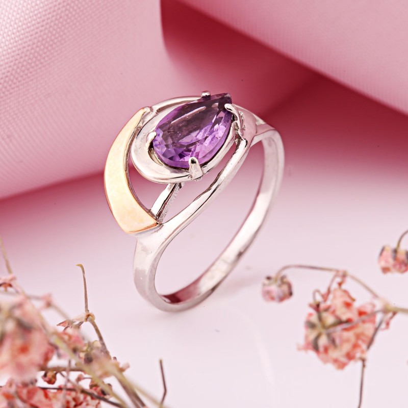 Silberring mit Gold in Deutschland kaufen Amethyst. Eleganter Ring aus 925er Silber, verziert mit Gold und Amethyst! Rhodiniert! Der Ring wird die Zärtlichkeit, den Charme und die Natürlichkeit Ihrer Schönheit perfekt betonen und die Aufmerksamkeit auf die Weiblichkeit Ihrer Hände lenken.